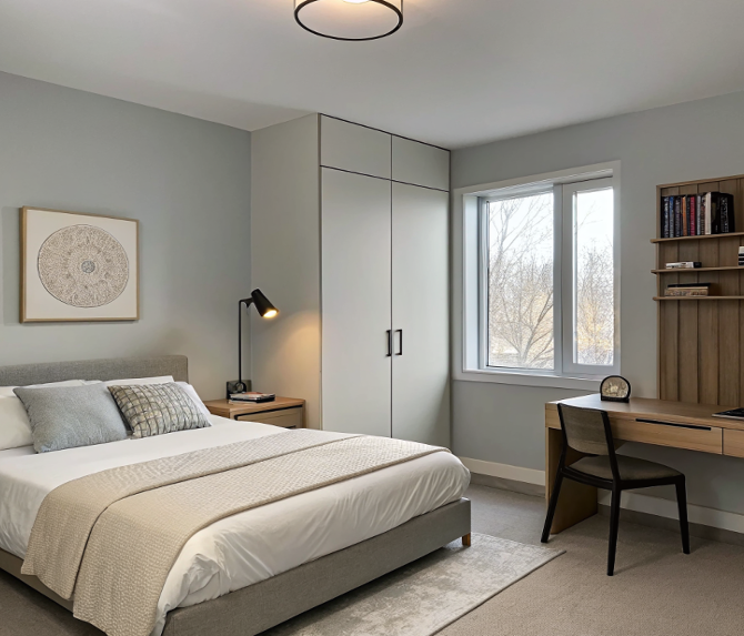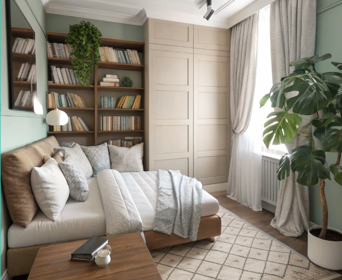 - Многофункциональная мебель: скрытые ящики, откидные столы, встроенные ниши.
